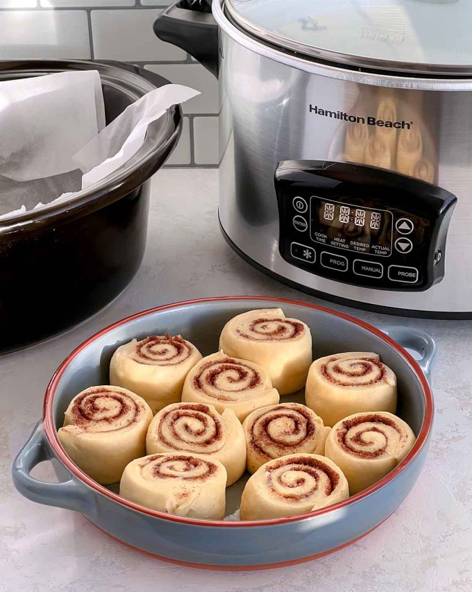 - Limited oven space: Think Christmas morning, or any other holiday where your oven is in high demand. Using the slow cooker allows you to still bake cinnamon rolls fresh, alongside anything else that needs to be in the oven.